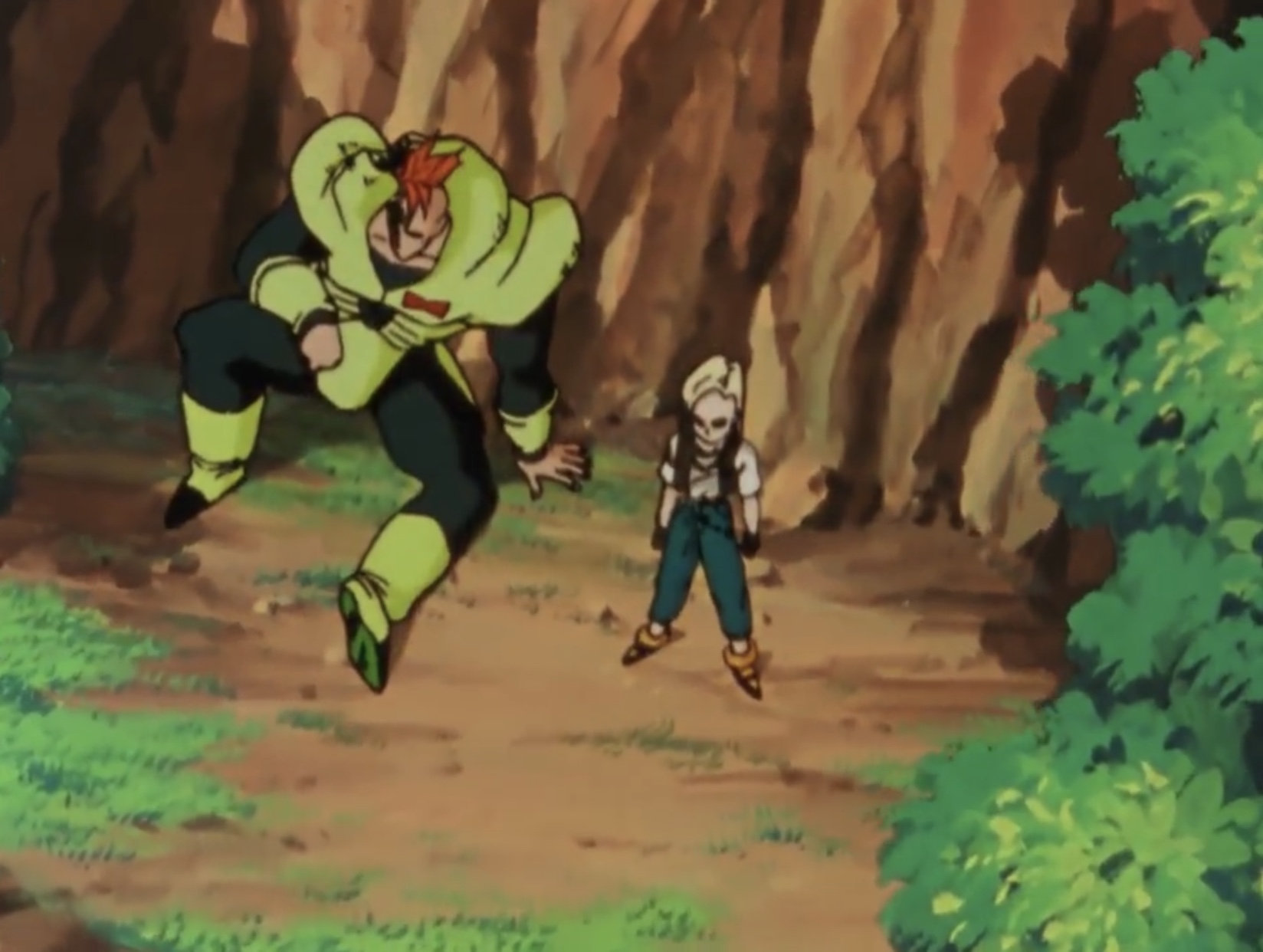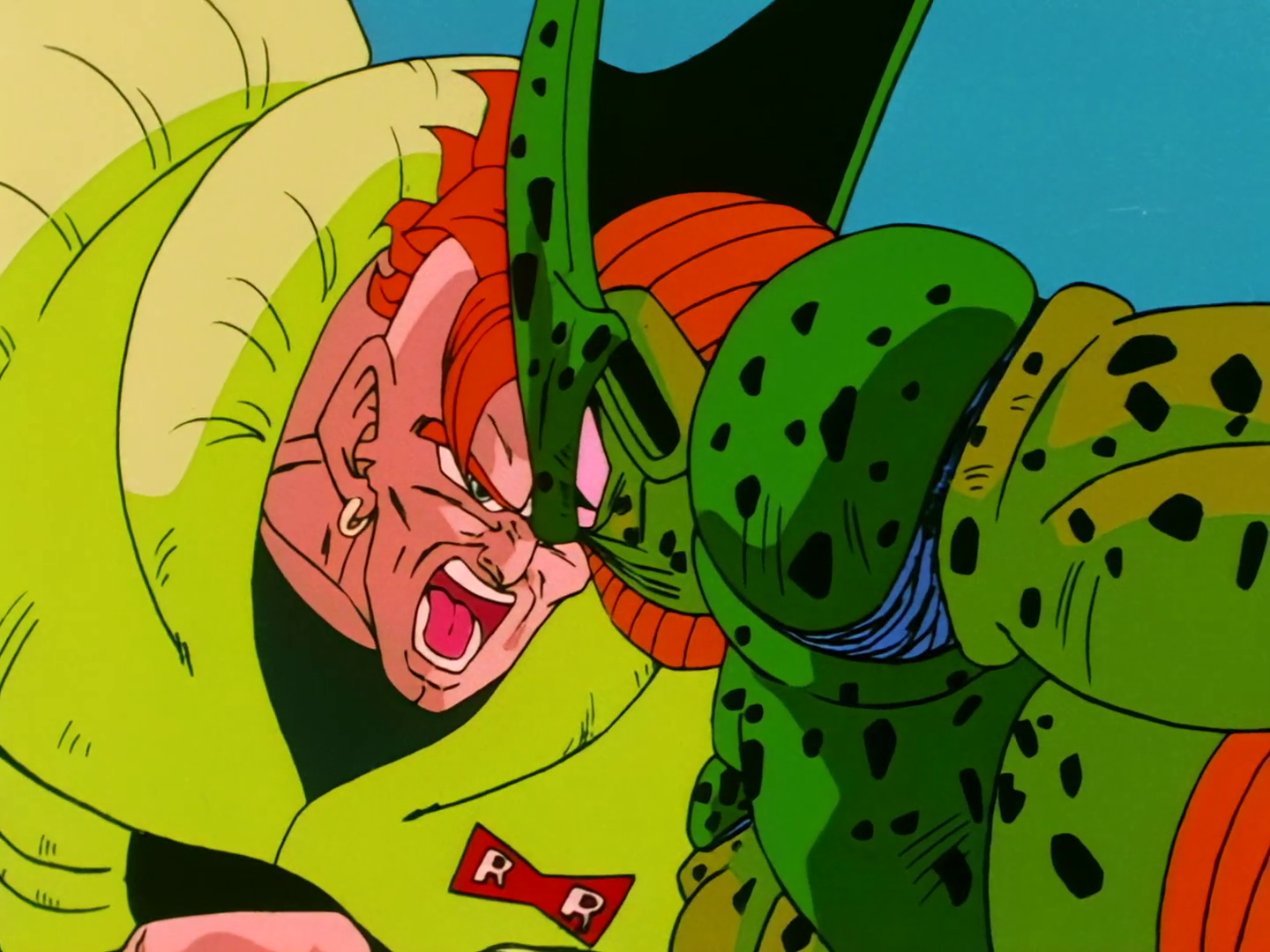 Android 16 lunges at Cell in an attempt to kill them both