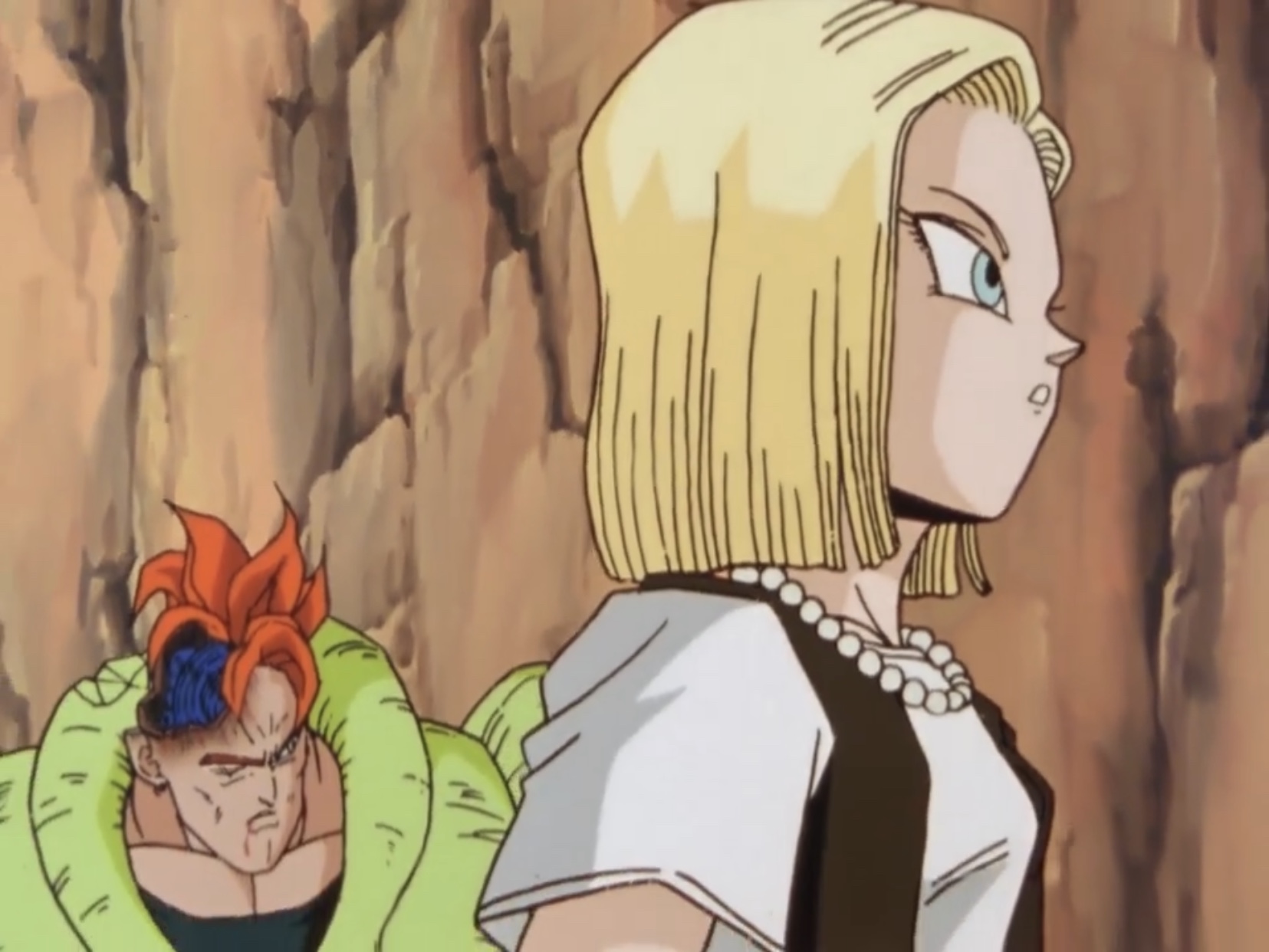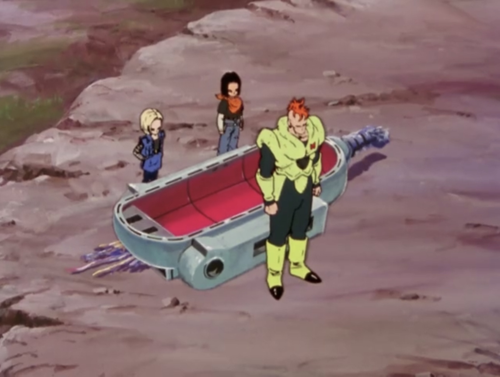 As the androids pass over a mountain road, 17 decides to land and says that they will steal a car and drive to Goku's House, as there is no need to rush, reveling in his newfound freedom. 18 remarks that 17 is still part human, as he has the male love of pointless amusement. 17 asks 16 if he understands, since he was created from a human male too. Android 16 then reveals that he was never a human, making him fundamentally different from the twins. 17 is surprised that Gero had the capability to make a true android and wonders why he experimented on him and 18 afterwards. When Vegeta in his Super Saiyan form intercepts the trio, 17 and 18 implore 16 to step in and fight, interested to see him in action, as that was their main purpose for activating him in the first place. However, Android 16 refuses to fight him, thus prompting Android 18 to volunteer.[3]
