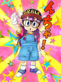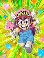 In class, she was sat next to Akane Kimidori, the rebellious younger sister of Aoi. Arale shocked everybody at the school on her first day with her intelligence during class and strength during P.E. At the end of the day, she followed Akane who was meeting up with Taro Soramame and his younger brother Peasuke. Not knowing Arale's power, Taro tries to intimidate Arale by punching a soda can, but she easily destroys a wire pole in front of them making them scared and gain respect for Arale as their friend.[6][7]