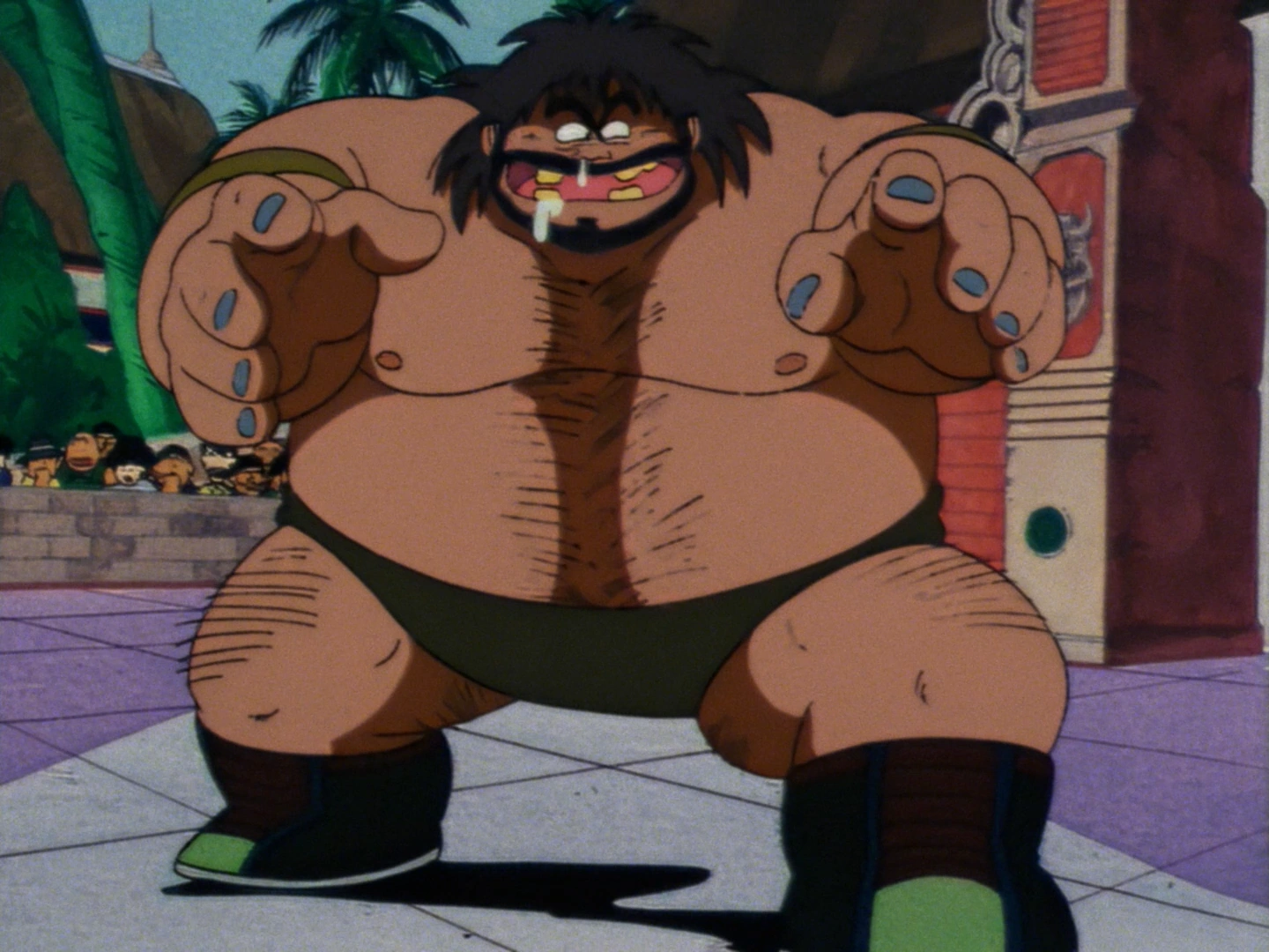 Bacterian (バクテリアン Bakuterian) is a filthy, giant and dirty Earthling that competed in the 21st World Martial Arts Tournament. He has the reputation of never taking a bath or brushing his teeth in his entire life. He uses this stench he has gained as a tactical advantage in fighting, making his opponents only fight with one hand, since they have to use their other one to hold their nose.