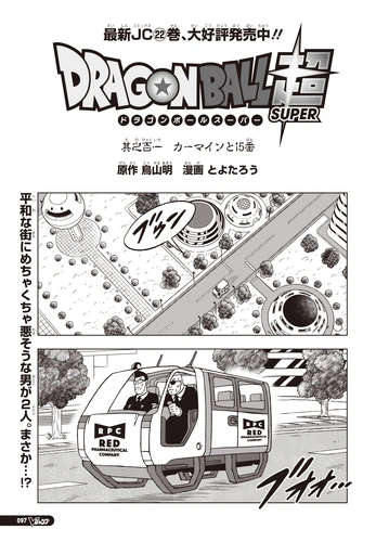Carmine and Soldier #15 (カーマインと15番 Kāmain to Jūgo-Ban, lit. "Carmine and No. 15") is the 101st chapter of the Dragon Ball Super manga.