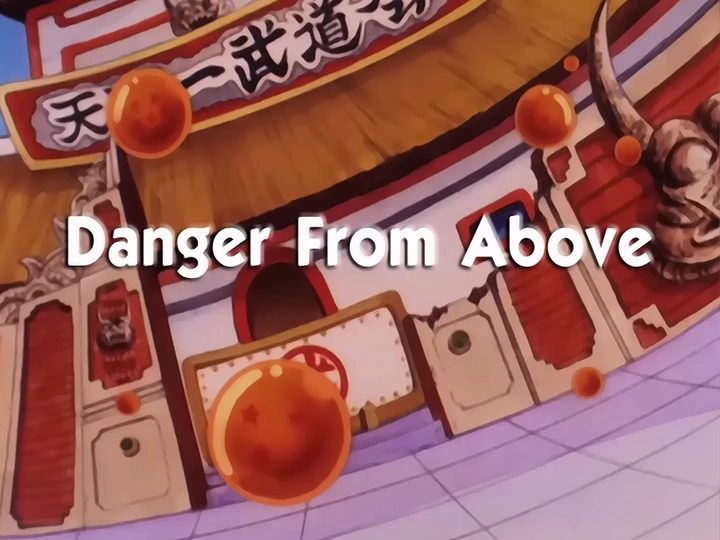 "Danger From Above" (たて悟空!恐るべき天空X字拳 Tate Gokū! Osoru Beki Tenkū Pekeji-Ken, lit. "Get Up, Goku! The Fearsome Tenku Pekeji-ken") is the twenty-fifth episode of Dragon Ball and the twelfth episode of the Tournament Saga. This episode first aired in Japan on August 13, 1986. Its original American airdate was September 21, 2001.