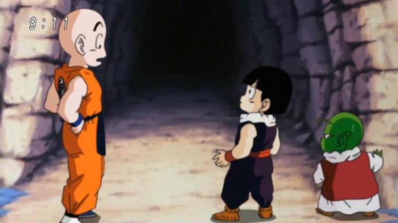 Gohan and Krillin saving Dende from Dodoria