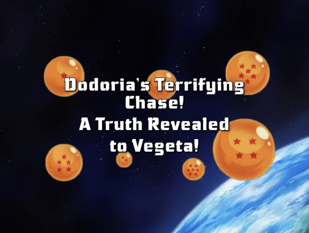 "Dodoria's Terrifying Chase! A Truth Revealed to Vegeta!" (猛追ドドリアの恐怖! ベジータに明かす真実 Mōtsui Dodoria no Kyōfu! Bejīta ni Akasu Shinjitsu, lit. "Dodoria in Terrifying Hot Pursuit! Vegeta Learns the Truth") is the twenty-second overall episode in the Dragon Ball Z Kai series. This episode first aired in Japan on September 6, 2009. Its original American airdate was June 23, 2010.