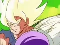 Goku, having just transformed into a Super Saiyan, orders Gohan to take Piccolo and find Bulma to get them both to his ship and leave Namek. Although shocked at Goku's transformation, Frieza chuckles as he nearly prepares a Death Beam in order not to let Gohan and Piccolo escape out of the sky, but Goku quickly appears in front of him and begins to effortlessly crush the tyrant's hand. As Goku lectures Frieza on his ruthless killing spree and how he can obviously only think about how to destroy him as well as lacking even the slightest remorse in his actions, Frieza groans in pain and struggles to free his hand from Goku's rough grip. As Frieza continuously struggles to free his hand, a purple pink energy dome is formed surrounding both of them. Frieza finally wrenches free and realizes that Goku has become the Super Saiyan he feared for so long.