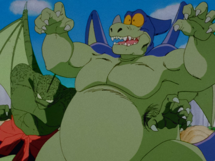 Ruthless and hard-of-heart, Giran is always eager to fight, and enjoys pounding anyone foolish enough to challenge him. This enormous dinosaur-like creature is able to fly using his powerful wings. He also spits out a strange gooey substance he calls his "Merry-Go-Round Gum," which he uses to trap his opponents. Giran is something of a bully and in one episode he was shown stealing a fish from a few bears. He seems to be very self-conceited and selfish. However, he is not without kindness. Though he often seems cruel, brief glimpses of the good part of him are seen. When he is not fighting, Giran has a voracious appetite, and enjoys washing down his considerable meals with a few cold glasses of milk. However, he is wasteful and throws a half-eaten chicken drum across Competition Hall when eating with Goku at the World Tournament, which disgusts another contestant, Nam. When he meets Goku right after the tournament, he is respectful to him, because of their fight. Still, Giran seems to love tormenting people and threatening to kill them. However, the fact that he was twice revived by the Dragon Balls proves that he is not truly evil.