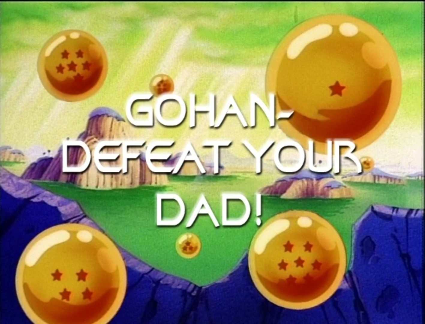 "Gohan, Defeat Your Dad!!" (奴はオラじゃネェ!悟飯びびるな父を撃て!! Yatsu wa Ora ja Nē! Gohan Bibiru na Chichi o Ute!!, lit. "That Ain't Me! Gohan, Don't Lose Your Nerve, Hit Your Father!!") is the sixth episode of the Captain Ginyu Saga and the seventy-third overall episode in the uncut Dragon Ball Z series. This episode first aired in Japan on January 16, 1991. Its original American airdate was September 17, 1999.