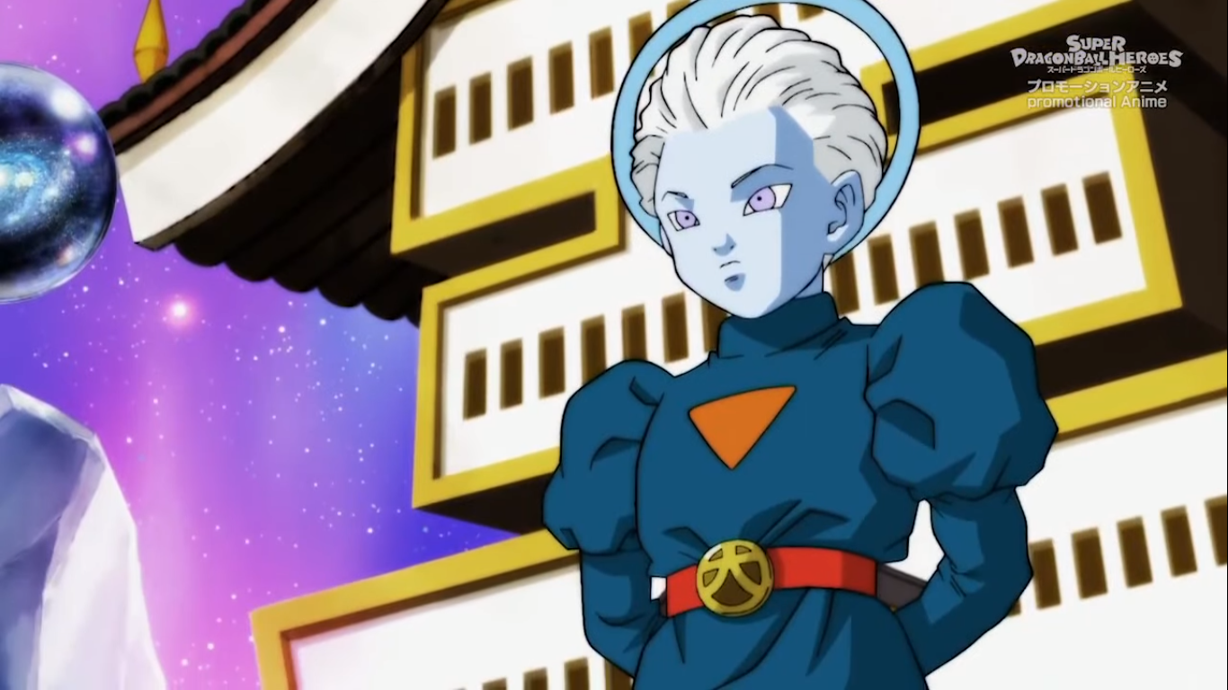 When Whis appears at Zeno's Palace, Grand Minister joins his side to ask how he can help. Wondering if Whis is there to ask for his universe to be saved following another disturbance involving Moro, Whis says that he is not but is there to confirm something regarding their angel laws to which Grand Minister assumes correctly is due to the matter regarding Merus. The Grand Minister tells Whis that he had dispatched the Angel trainee, Merus to Universe 7 in order to broaden his perspective on the mortal world, however, despite their laws that Angels must act impartially, Merus had gone on to join the Galactic Patrol and grew a bias on the scale of right and wrong. The Grand Minister decides to recall Merus but Whis convinces him to let him deal with the situation.