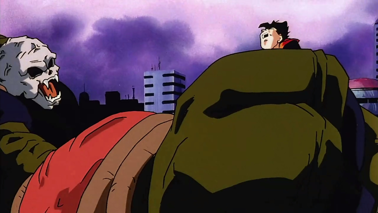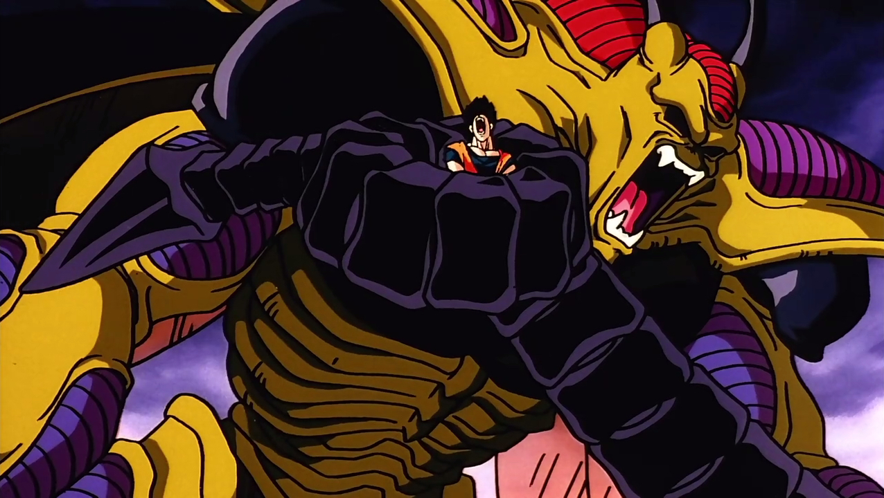 Hirudegarn (transformed) crushing Gohan with his tail
