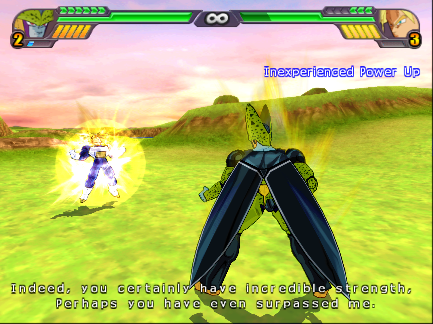 Future Trunks using the Inexperienced Power Up in Budokai Tenkaichi 3