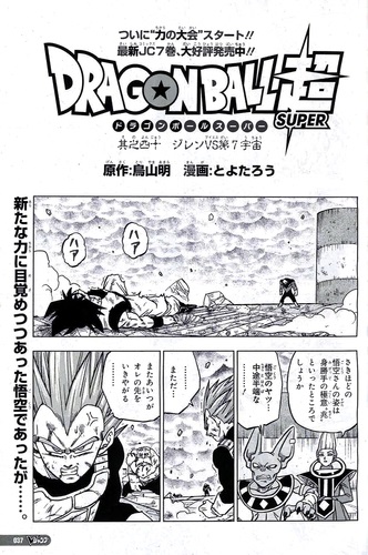 "Jiren vs. Universe 7" (ジレンVS第7宇宙 Jiren Buiesu Dai-Nana Uchū, lit. "Jiren vs Universe 7") is the 40th chapter of the Dragon Ball Super manga.