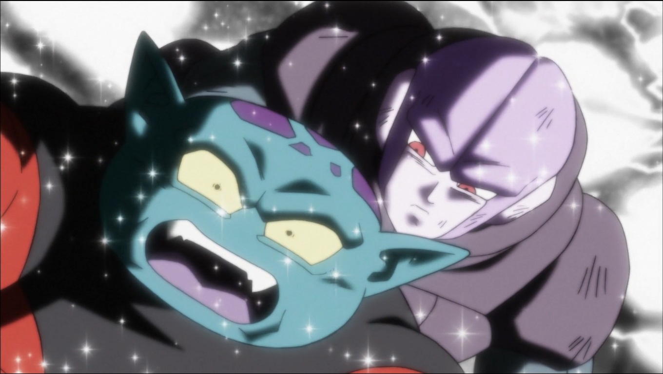 Afterwards, Goku and Hit switched opponents with each other and K'nsi ended up dealing with Goku as he turned Super Saiyan Blue and attacked K'nsi, ignoring his exploding threads, landing a clean blow. K'nsi later saved Dyspo from falling off once again with his threads. K'nsi told Dyspo to retreat as he prepared to take Hit with him and attacks, but Hit Time-Skipped behind him and knocked him off. With K'nsi knocked off, there were only 3 Pride Troopers remaining.