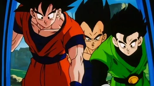 Gohan, Goku and Vegeta enter Babidi's spaceship