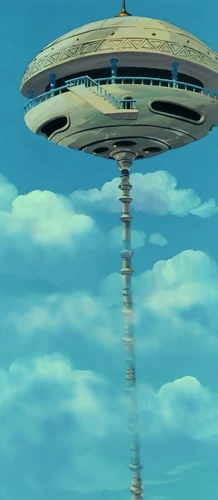 A hole in the top of this tower fits Goku's Power Pole, which serves as the link between the tower and The Lookout. It should be pointed out that it is made of a quite durable material, that the structure itself is so hard to destroy that Mercenary Tao had trouble cracking one of the columns. Since it was directly under Kami's Lookout, Yajirobe and Korin were not affected by the Black Water Mist released by Garlic Jr. Bora, Upa and the rest of his tribe are located at the base of the tower as guardians.