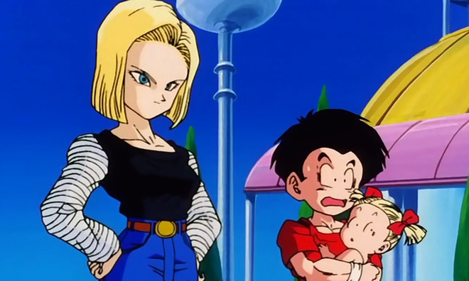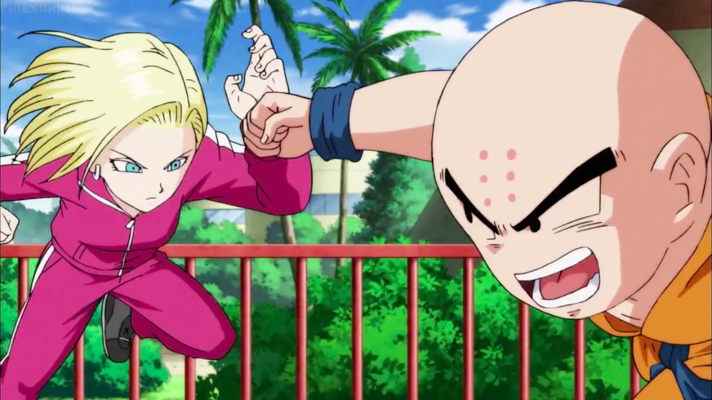 However, Krillin can be just as jealous as his wife can be as he tells the Future Warrior in Xenoverse 2 not to try anything funny with his wife, when they are training under her, which he says regardless of their selected gender or race. He is also fiercely protective of her and their daughter as he wanted her to stay to take care of Marron while he confronted Frieza after his resurrection and willingly confronts villains stronger than himself to protect her such as Cell, Super Buu, and Bio-Broly.
