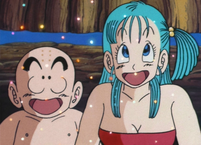 Krillin and Bulma finding the pirate treasure