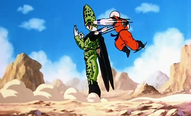 Krillin fighting Chiaotzu.