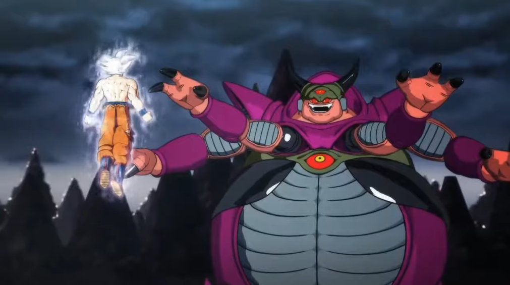 Inside the palace, Ozotto greets the group and explains that many of the beings that he has absorbed have been locked inside and in order to save them they will have to head into the five rooms lying in front of them where they will have to face and defeat one of his clones. With no other choice than to play Ozotto's game, Goku and the others each enter one of the five rooms. After Goku enters, he is personally greeted by one of the Ozotto clones waiting for him and Goku soon transforms into Ultra Instinct Sign. Ozotto unleashes a flurry of attacks against the Saiyan that Goku easily manages to avoid, even after he transforms into the likes of Turles and Bojack though manages to slice his cheek upon transforming into Meta-Cooler. Ozotto returns to his original appearance as he vows to eat everyone though Goku tells him that he is underestimating his opponents, especially Vegeta.