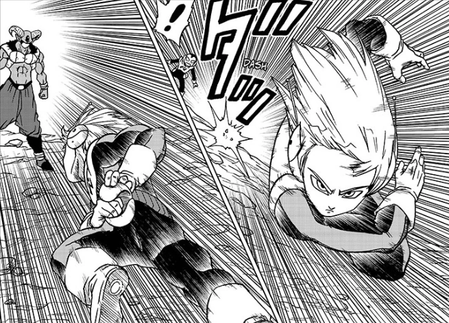 As a relieved Jaco asks the newly arrived Merus what took him so long, the elite agent explains that he has only arrived to finish up Goku's Ultra Instinct training. Moro looks around and notices that the fallen Z Fighters are no longer present within the barrier, realizing that Merus has sent them away to another place, which Merus describes as being safe and far away.