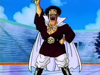 Mr. Satan announcing his participation at the Cell Games