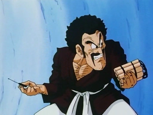 Mr. Satan thinking how to defeat Mighty Mask and Android 18