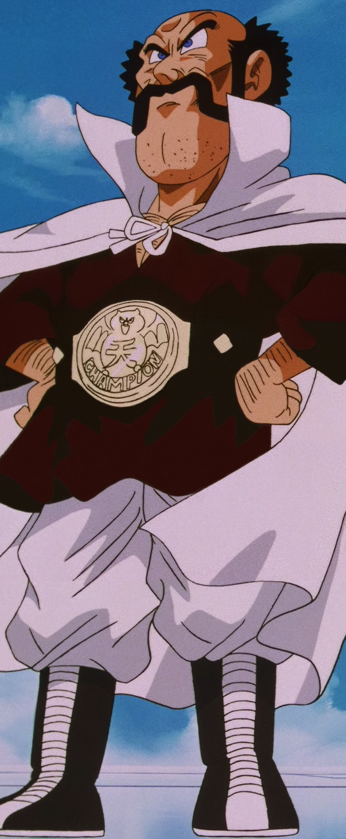 During the Dragon Ball Z time period, Mr. Satan is the reigning World Martial Arts Champion, a title won fairly by beating other normal earthlings in a time when Goku and other powerful fighters were battling on Namek and later against the Androids.[6] During the time of the Cell Games, Mr. Satan was already rich and famous, but also an egomaniac. He boasted endlessly on television about his strength, and that he was the "best fighter in the world." In the eyes of characters who know otherwise, he is considered to be a showboating blowhard.