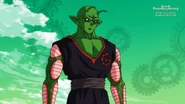 The Namekian in Black eventually joins forces with his fellow Piccolo and the others to fight against the newly revived Demon Gods Xeno Dabura, Shroom, Putine, Gravy, and Salsa. In the manga, he stands alongside Piccolo while Super Saiyan Gohan takes on Shroom, and barks at Gohan from the sidelines to be careful throughout most of his fight. Piccolo asks his counterpart if standing idly by is the best decision, but the Namekian in Black telepathically reminds him that the Super Space-Time Tournament is a means of testing each fighter's capability to survive, but due to Demigra's intrusion, he advises Piccolo to be ready to retaliate as he prepares a Special Beam Cannon. Both Piccolos continue barking advice at Gohan until he finally defeats Shroom. Gravy arrogantly rushes in to fight the group next, but - having forgotten about the Namekians - is promptly eviscerated when the Namekian in Black and Piccolo's combined Special Beam Cannons pierce through him.