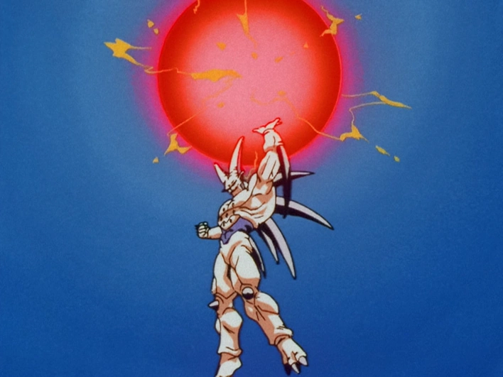 Omega Shenron pushes his chest forward, channeling pure negative energy through the cracked dark-blue Dragon Balls on his chest. Small red streams of energy fly out and start to form a crimson energy sphere as it expands many times its original size. Omega Shenron condenses the sphere to about the size of his body and launches it at the opponent, inflicting a huge amount of damage.
