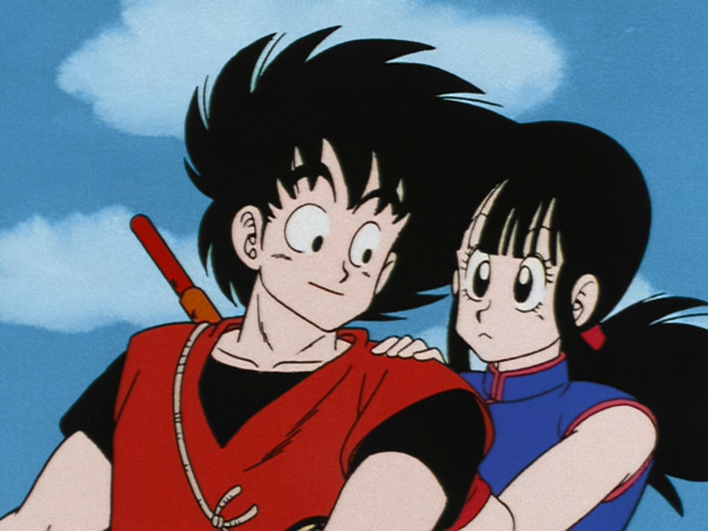 Anonymous is pleased that she took such a strong warrior for a husband and reveals herself to be Chi-Chi, much to the shock of Goku and the others sans Oolong. Remembering the promise, Goku reveals the truth behind why he promised; the fact that he believed that marriage was a kind of food, which leaves Chi-Chi distraught. Nonetheless, for Goku, a promise is a promise, and he then proposes to her before the crowd, much to Chi-Chi's happiness. The two then walk out of the ring, cheered on by the masses and congratulated by the announcer (though Goku is shown to be visibly uncomfortable with Chi-Chi's affectionate behavior).