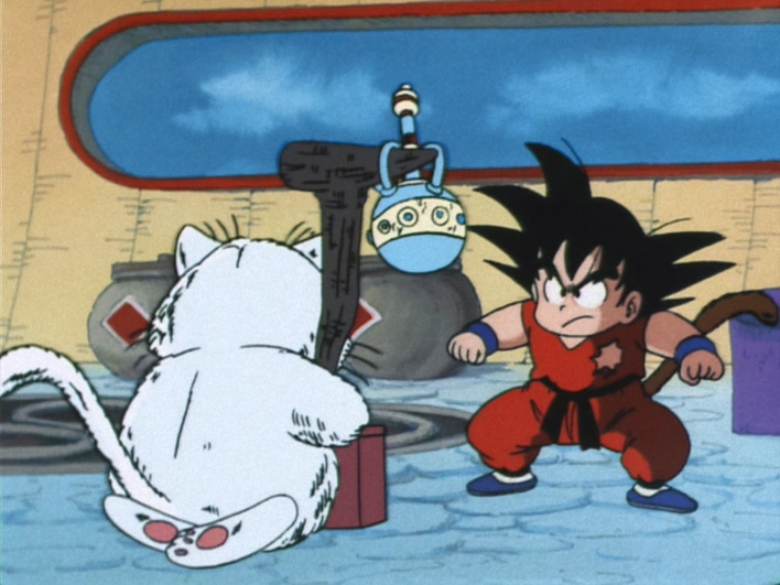 - Goku catches Korin and drinks the "Sacred Water".