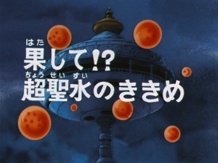 "Sacred Water" (果して!? 超聖水のききめ Hatashite!? Chō-Seisui no Kikime, lit. "Really!? The Effect of the Super Holy Water") is the fifth episode of the Commander Red Saga and the sixty-second episode in the Dragon Ball series. This episode first aired in Japan on May 13, 1987. Its original American airdate was November 5, 2002.