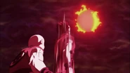 With Krillin eliminated, Beerus shuns him but says what's done is done, and all he can do now is cheer on his teammates. Supreme Kai looks sternly down at Krillin and says that he is not disappointed, but Krillin is not reassured due to the fierce look in his eyes. There are 43 minutes until the end of the Tournament of Power.