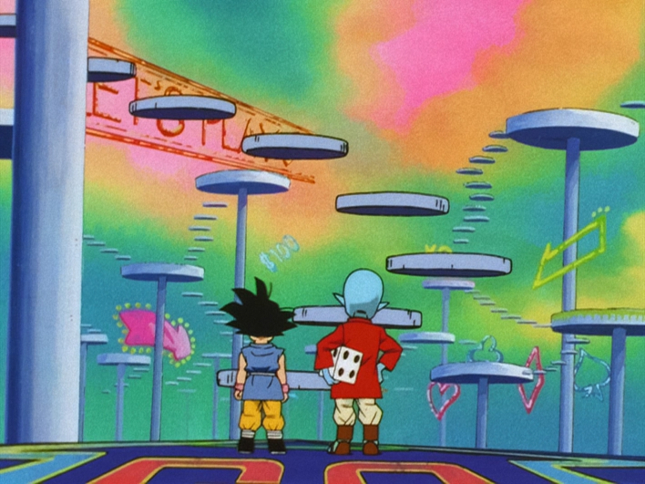 Sugoroku Space is seen in Dragon Ball GT when Goku is stuck there after Kibito Kai drops him during Kai Kai while escaping Baby's Revenge Death Ball.
