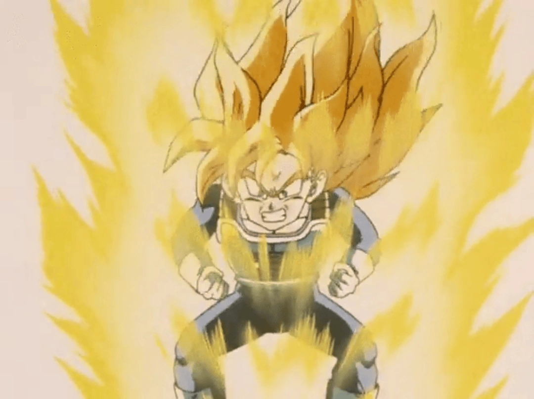 The first Super Saiyan transformation occurs when a Saiyan who has reached a very high level of power loses himself in a fit of rage.[26] It can be achieved by any Saiyan who has a high battle power above the standard level.[26] However, in the anime the transformation must be triggered in response to a great need, an example being in Goku's case to defeat Frieza. Intense rage may not be the actual or only source, but merely a focuser, as Goten proved able to obtain his form instinctively. To which, in Dragon Ball Super, Cabba described the process of as experiencing a tingling sensation of focusing one's energy emanating from the user's back (seemingly centered in a point along the spine) between the shoulder blades, Caulifla simply followed these instructions to transform into the state.