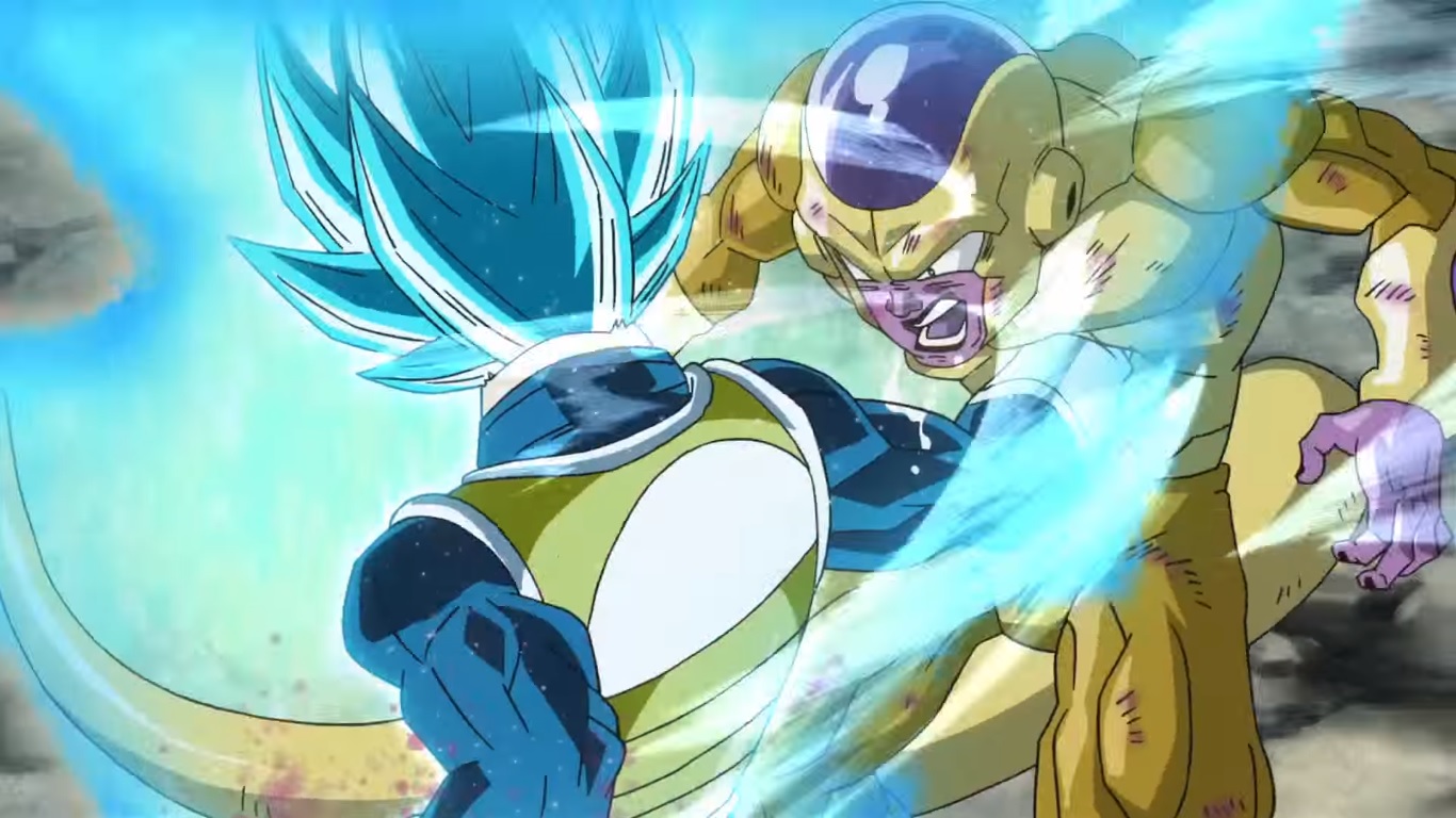 Super Saiyan Blue Vegeta pummeling Golden Frieza