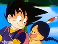 Goku flies back to Fortuneteller Baba's Palace having now received the final Dragon Ball from Emperor Pilaf and takes Upa, who is holding on to the other six Dragon Balls, to the Sacred Land of Korin so that his father can finally be revived. Yamcha wants to train with Master Roshi, who does not feel up to it, but Bulma changes his mind when she suggests that she will come by every now and then wearing a new bikini.