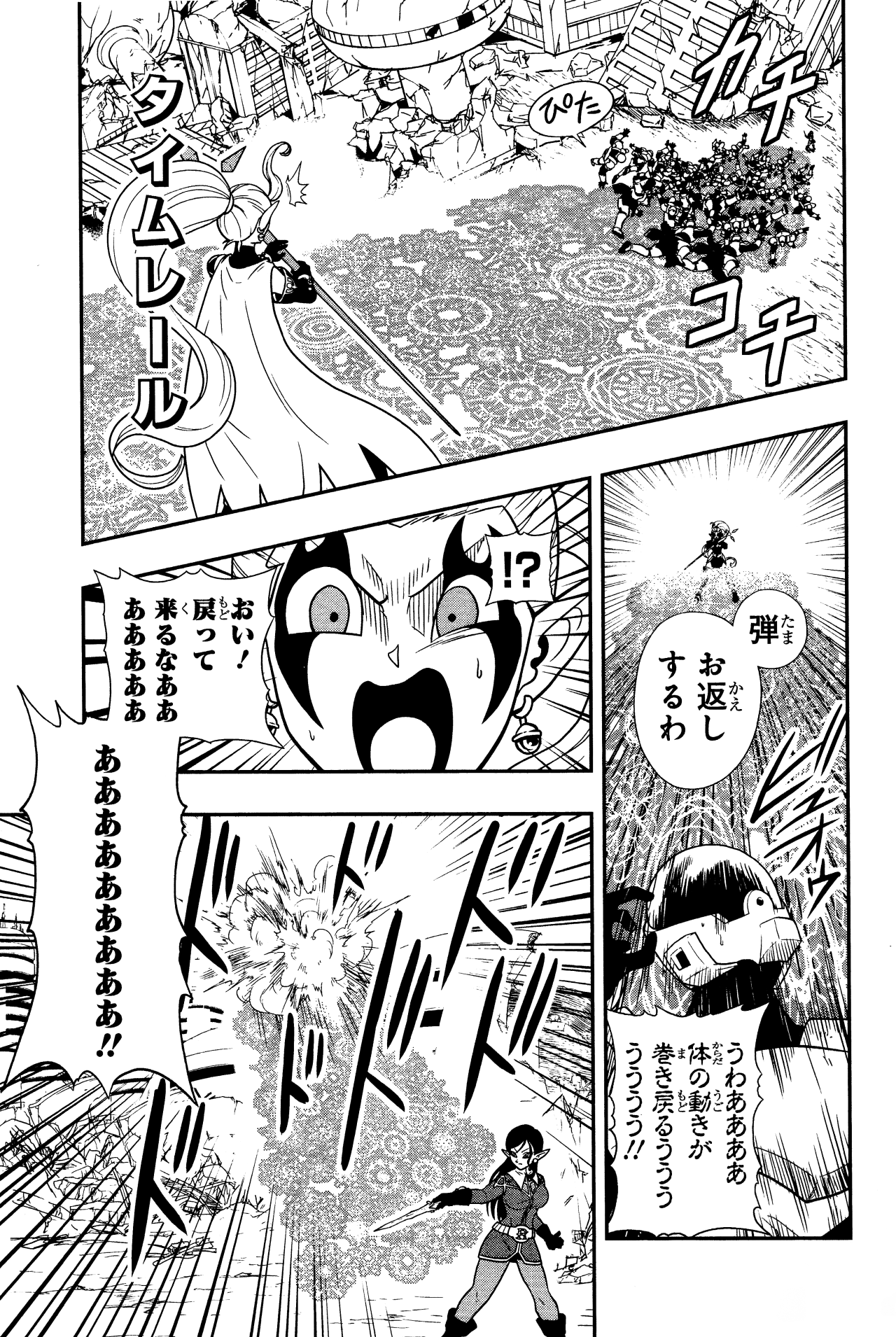 The user summons several circular space-time ruptures in the shape of gears to reverse the movements of an attack or person.