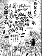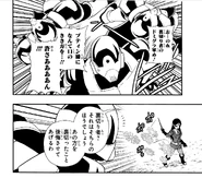 In the manga, Robelu used this technique against Xeno Dabura and Towa. She later used it to send the Demon Realm Soldiers crashing into Putine where they explode on impact.[1]