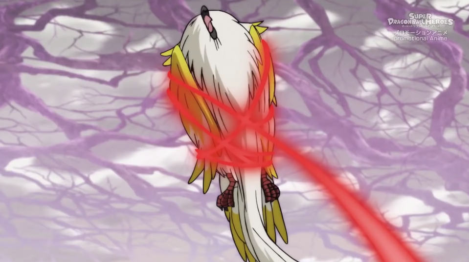 Suddenly, all twelve Gods of Destruction appear. Beerus powers up a Energy of Destruction Ki Blast, but Tokitoki flies upwards and flapping his wings, wipes out the energy blast. Goku asks Beerus what he is doing and he explains that according to his prediction, a strange bird will appear in Universe 7 and will destroy all of the universes. Xeno Trunks refuses to believe it, citing how Tokitoki had previously saved all dimensions. Xeno Pan then returns herself and Tokitoki back to the Time Nest.