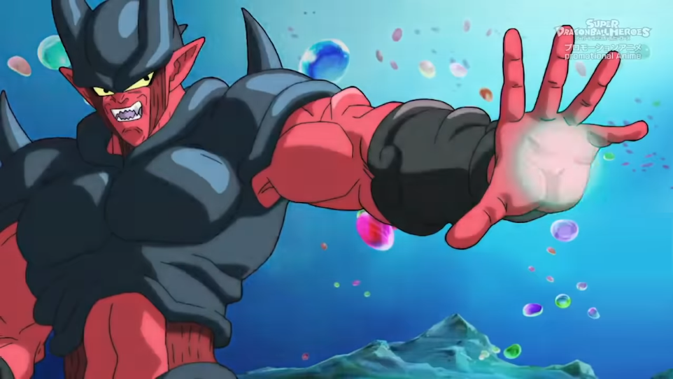 They quickly establish an upper hand and Xeno Goku suggests to Xeno Vegeta a particular technique that they should use and the two charge up their energy in order to perform the Limit Breaker Double Ultimate Dragon Fist which completely obliterates Janemba. After a few words are shared, Putine teleports everyone to the location of the Universe Tree. Meanwhile in another part of Hell, Hearts sits locked in a cell, wearing handcuffs and displaying a Halo.