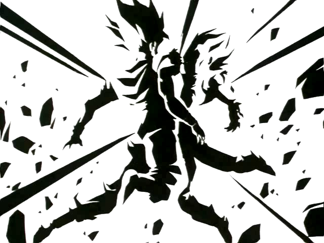 Demigra reveals he made plans to outlast fused opponents by concentrating the Dark Factor at specific points within his body to defend against attacks significantly better than normal, first blocking Vegito's strikes with his arms and then once with his face upon Vegito knocking his arms apart. Despite this, Vegito quickly discerns Demigra's reliance on narrowing down his defenses and proceeds with an all-out Spirit Sword flurry, dealing painful slashes to the Dark King's body and causing his arms to crumble. Vegito then defuses, much to Demigra's relief, but Goku and Vegeta remain confident that with the damage Demigra had received, he can still be defeated. In response to this, Demigra undertakes his Time Power Unleashed form and launches a Chaotic Gigantes at the pair, who also transform and respond with a Galick Kamehameha.[33]