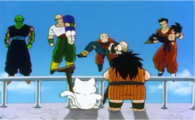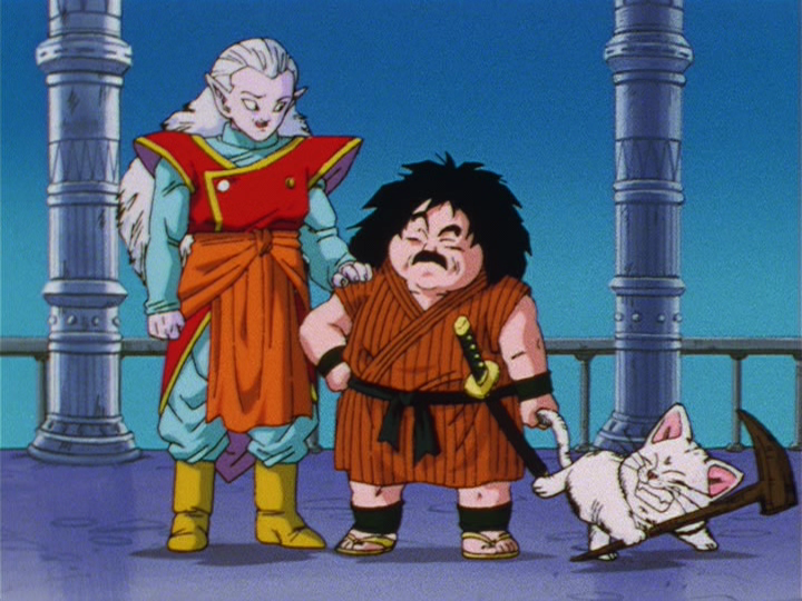 Yajirobe is seen later on Korin Tower, when Goku tests his power to give Korin a reading so he could compare it to Cell's power, and again when the Z Fighters are on their way up to Kami's Lookout after Gohan defeated Cell.
